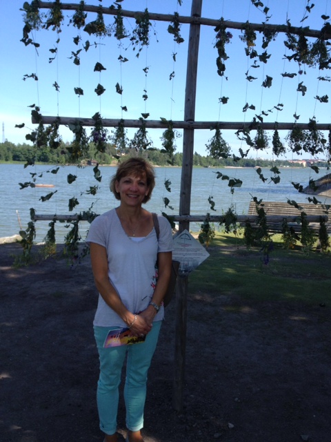 We are on Seurasaari Island where the Midsummer Festival is celebrated with this Finnish traditional flowered pole. It stays up all year until next Midsummer. By the way – the entire rest of Helsinki is closed today for the holiday.