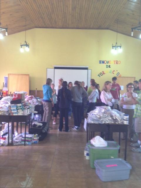 After a very long travel day we arrived in Quito at 5am! Bad weather in Houston, fog at Quito’s airport, re-fueling at another airport in Ecuador all contributed to our late arrival. Had a nice breakfast this morning and unpacked our supplies. You can see Madeline in the background chatting it up with some of the volunteers her age.
