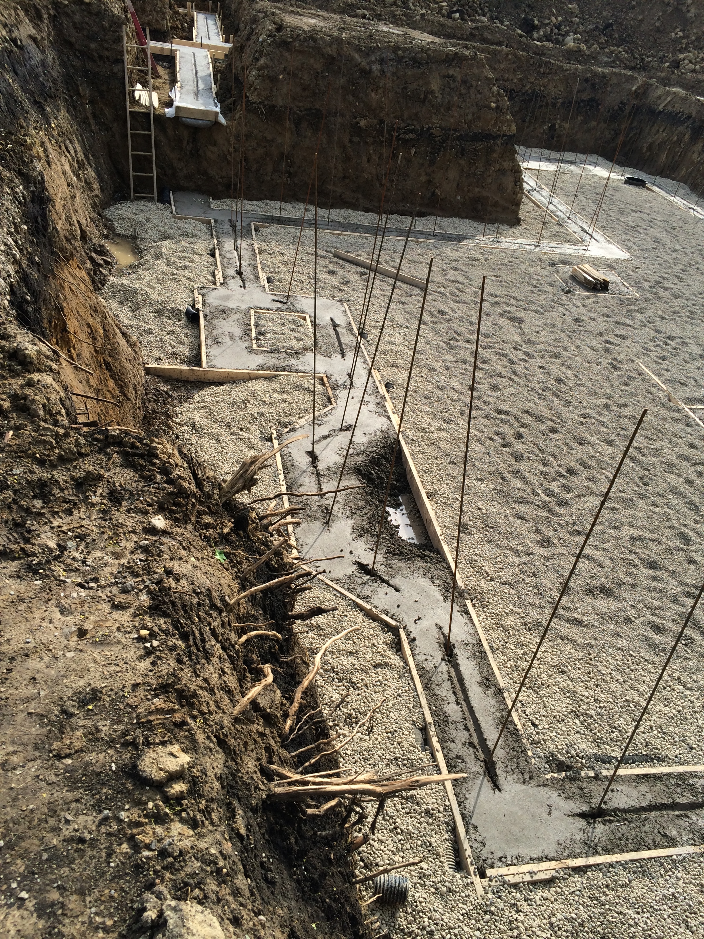 Good thing, too. At about 8pm we were SOCKED with an epic rainstorm that surely would have caused a delay past Tuesday. As it currently stands, we’re expecting to have foundation walls by Friday.