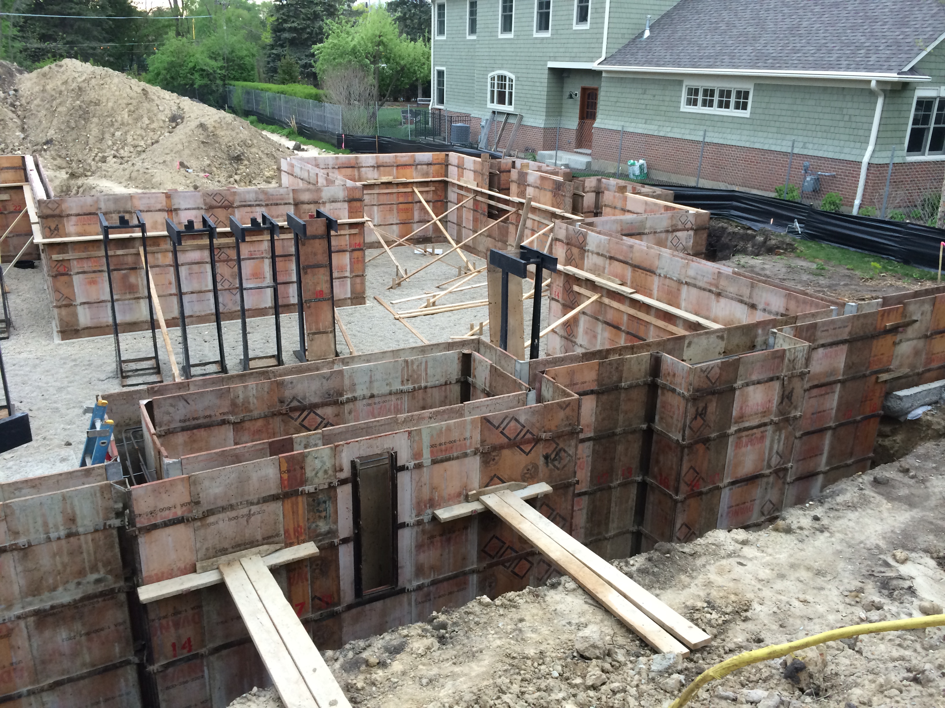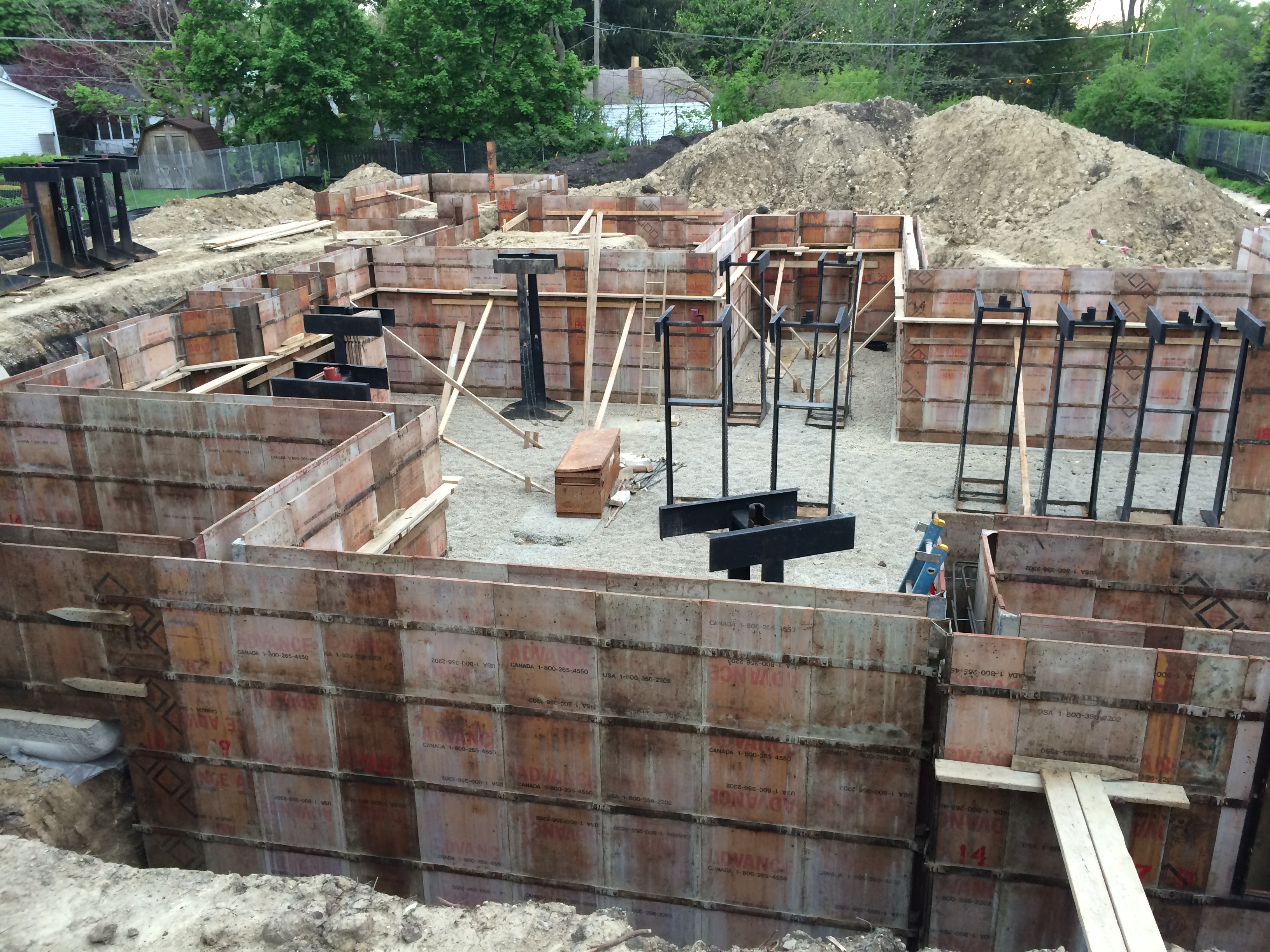 Thanks to Al and his Concrete Crew we now have the forms in place for what will become the foundation walls.  I was hoping to get an interior shot but there was no way to climb over the forms – and with them being 9 feet tall I couldn’t make the jump.