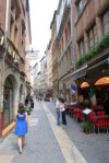 Lyon is a pretty big city with two rivers running through it and – unlike Paris with its royals and politicians – actually had people who worked for a living. Lyon was originally founded by the Romans and more recently, its wealth was built on the silk and shipping trades. It now has two main areas for the tourists…the Vieux Lyon (Old Lyon) and modern Lyon. It’s also considered to be France’s food capital…so after making our LOST-ITEM claim with SGV (France’s Rail Operator) we climbed down the 250 steps from our hotel to street level to meander towards our dinner at a classic 100 year old Brasserie. The Francais-only menu/waitstaff had us playing a little roulette with our dinner orders…Anne’s entree came with a rich crayfish sauce; a dairy-allergy sufferers worst lament. The girls generously shared their boeuf and lamb and of course, wine is dairy-free.