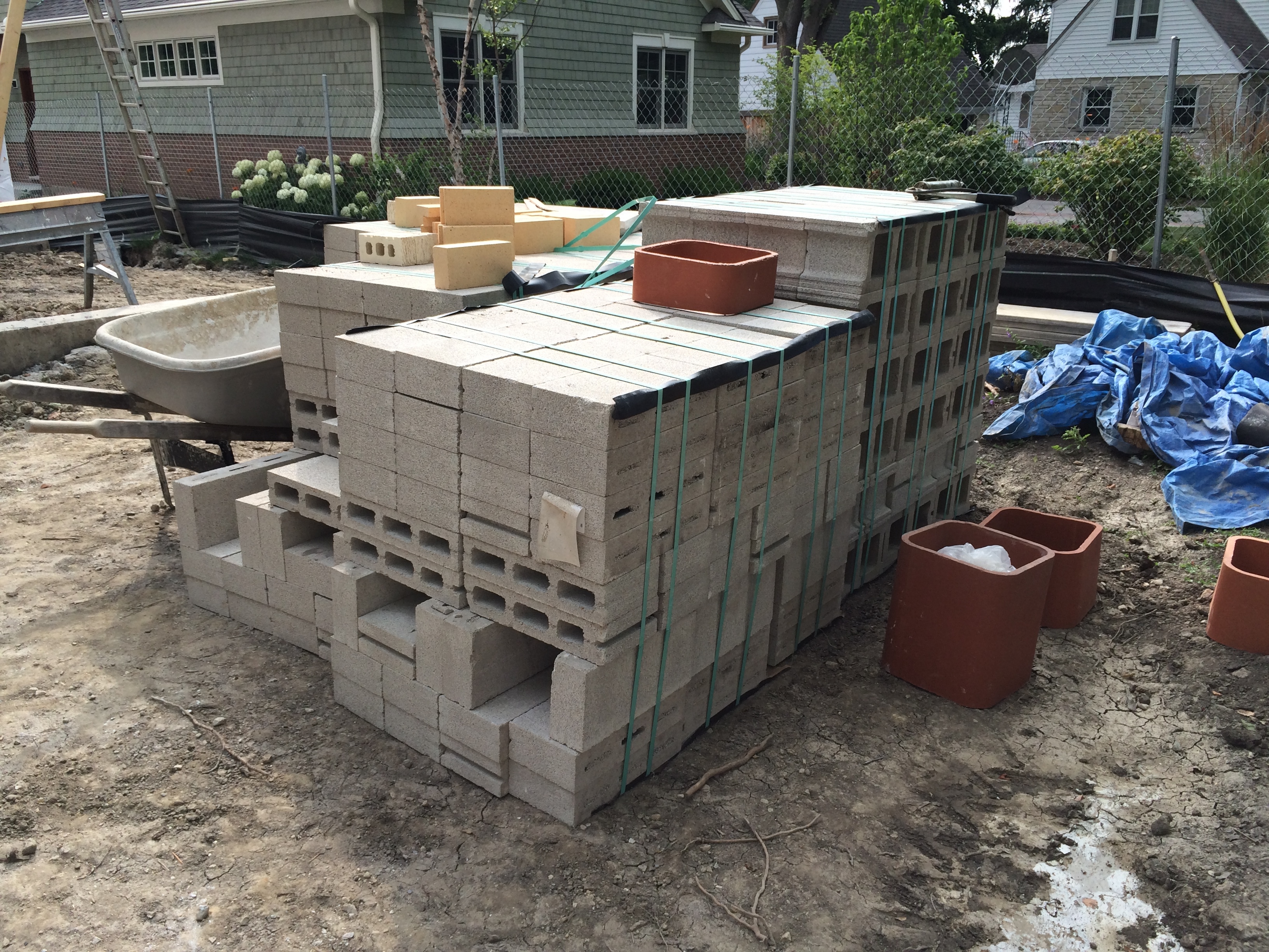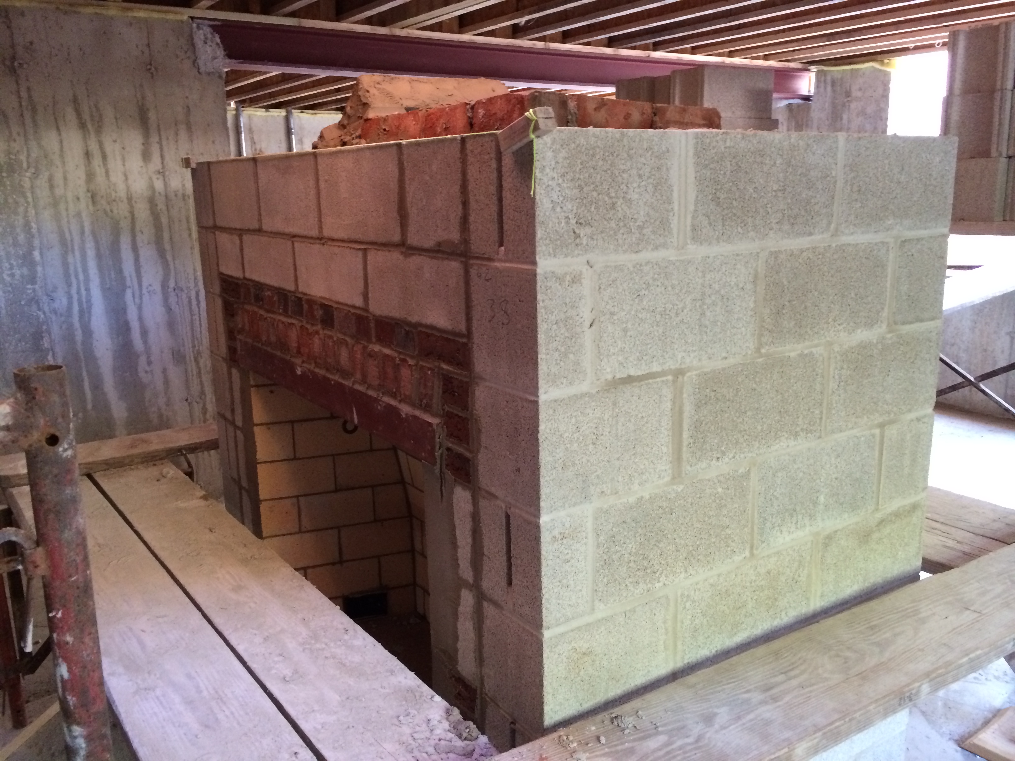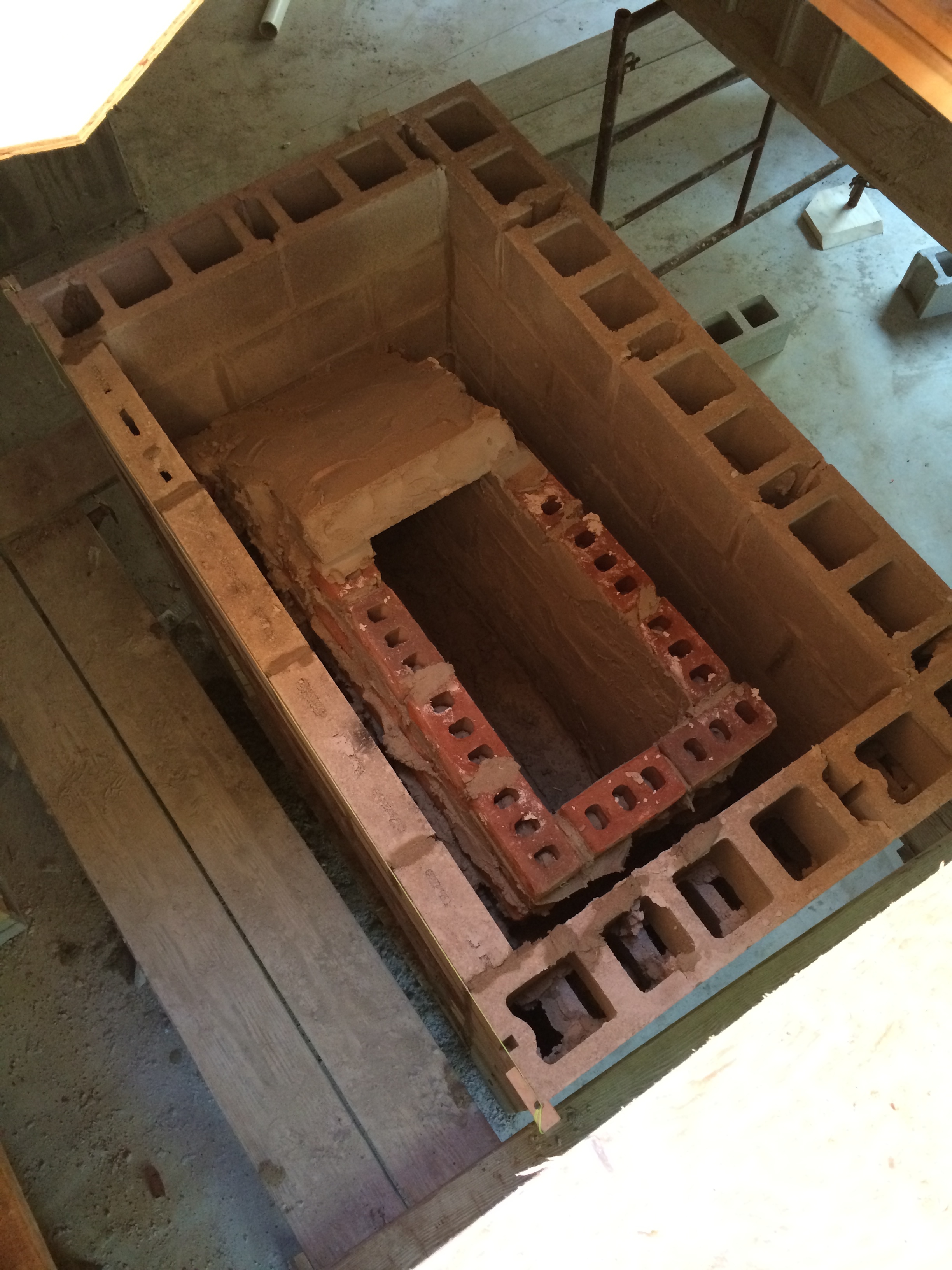 The carpenters have company at the house…the masons.  Yep, we’ll finally have something in the house besides wood and nails.  The masons are stacking block, bricks and hi-temp stones in the shape of our fireplace.  It’s kind of cool to see how it will vent from both the basement and the great room through the same chimney.
