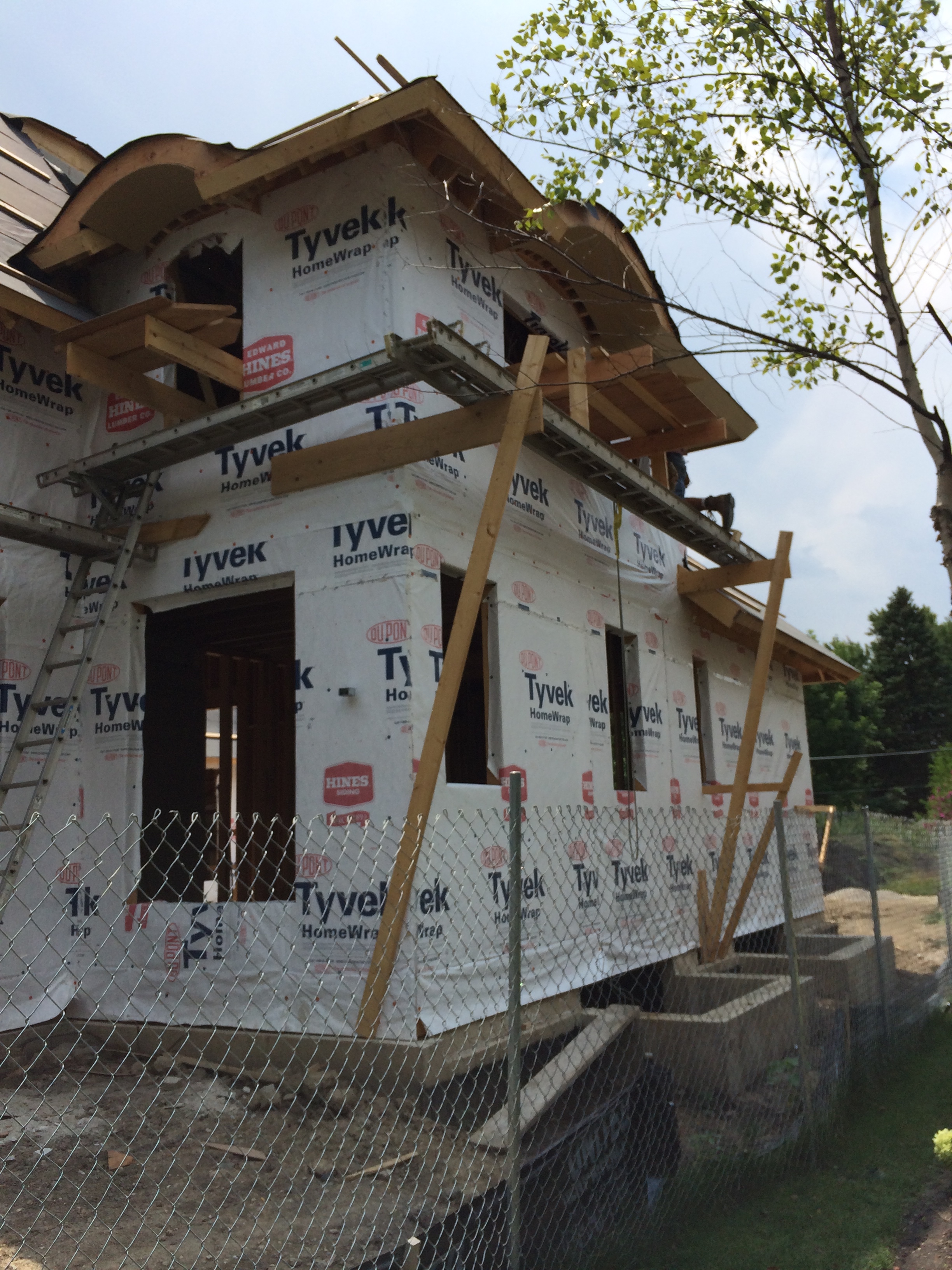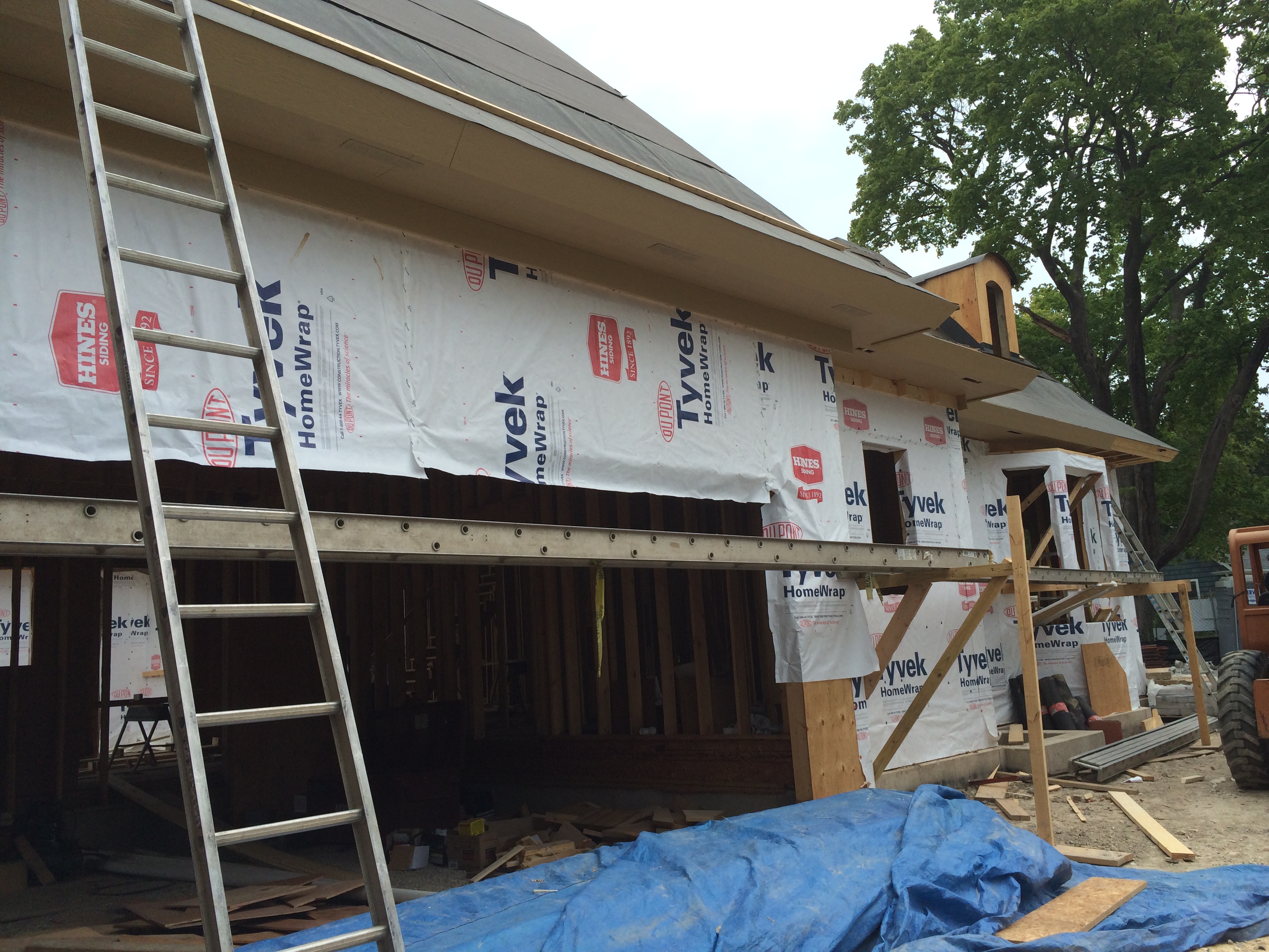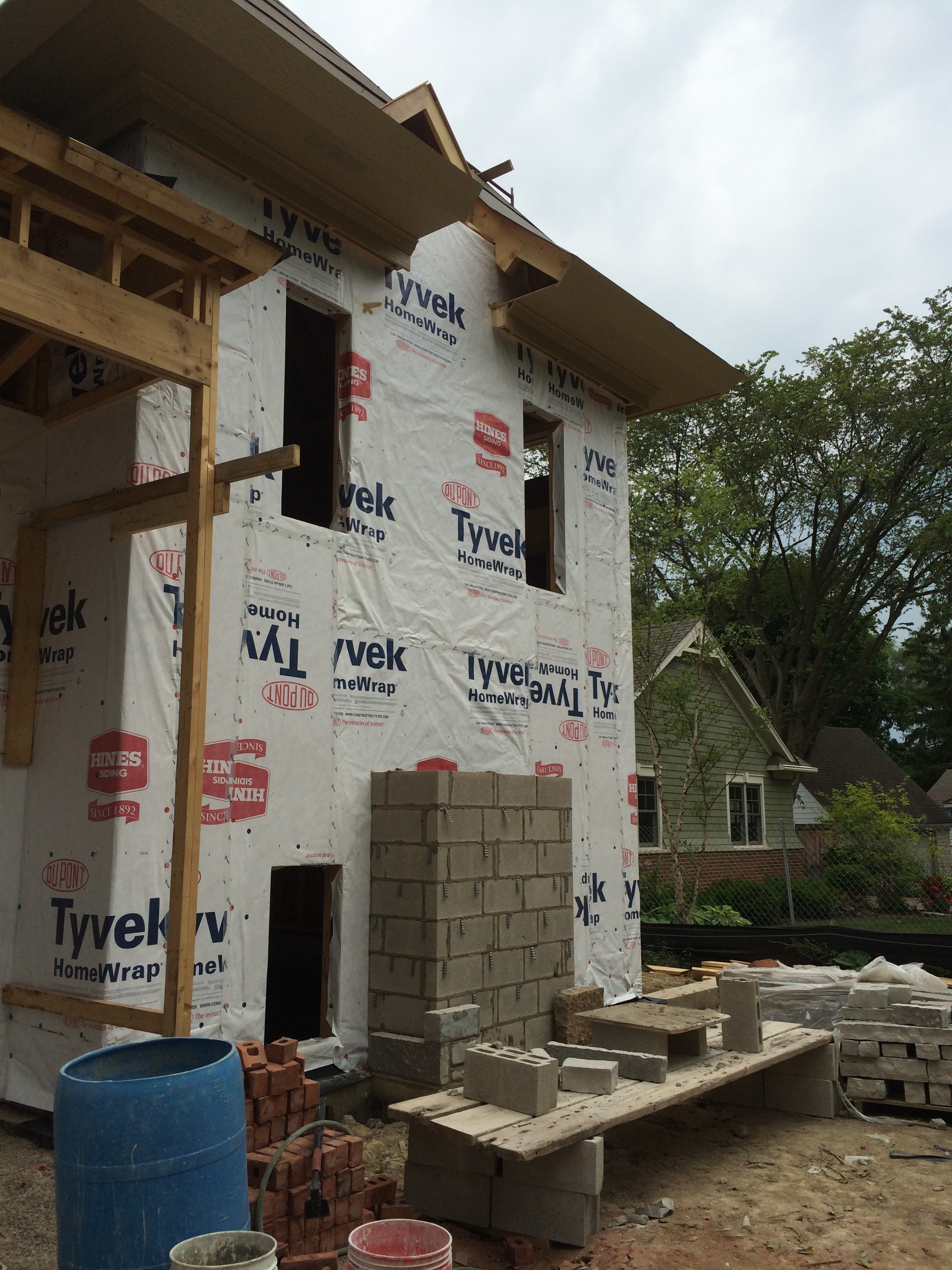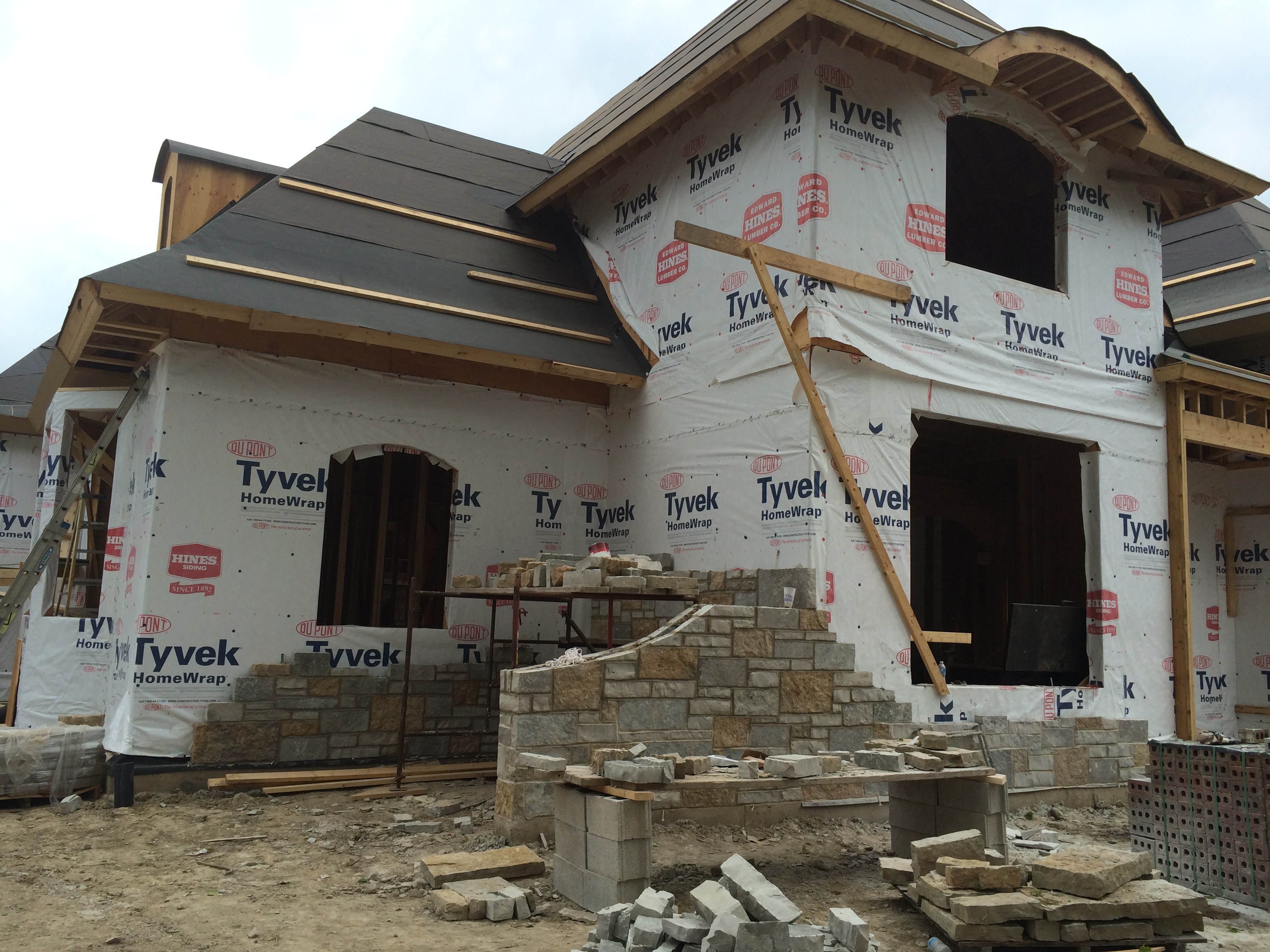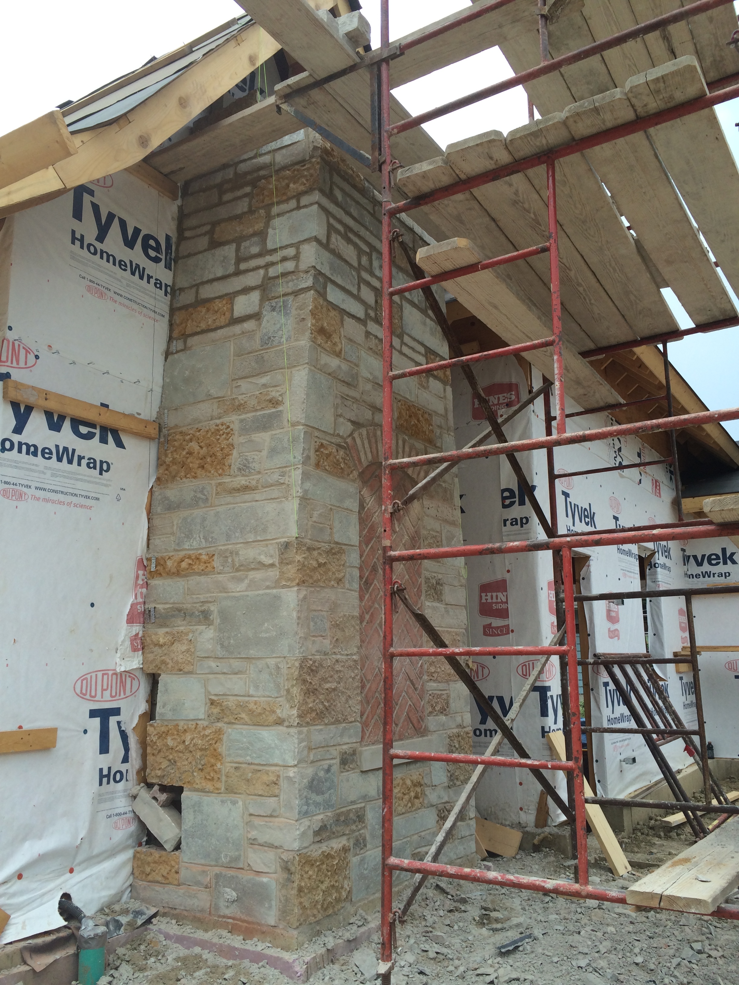 While at the house, we took some photos showing progress on the fascia (Ted + Carpenters) and the stonework (Mark’s guys) on the loggia chimney and the knee wall on the front of the house.