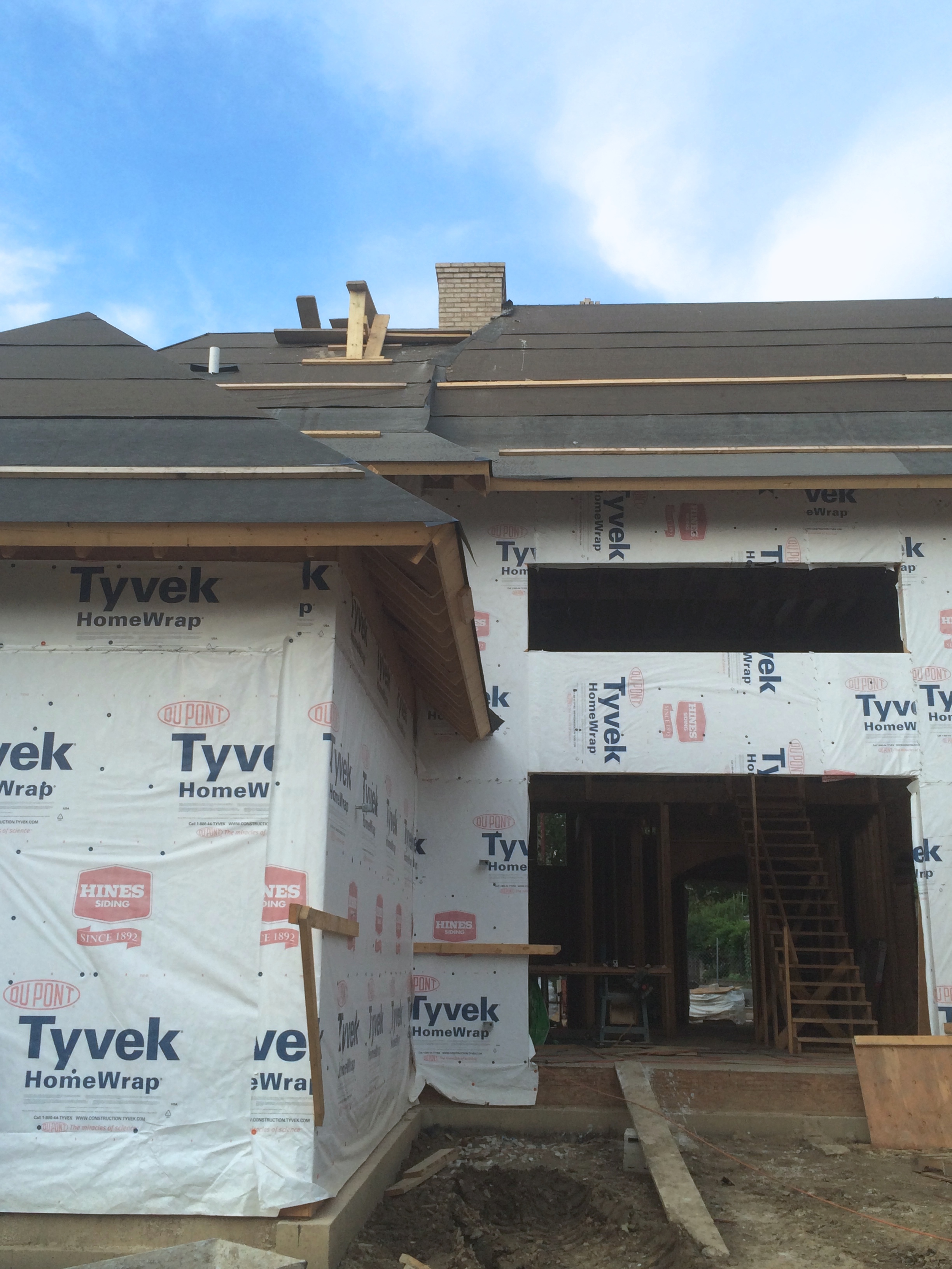 – Mark’s Mason’s installed the top of the main chimney, top of the loggia chimney and continued work on the front chimney…which we tweaked slightly from the original design.