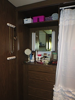 | Jeff is putting together a shelf to hold Madeline’s snacks and momentos of home. |