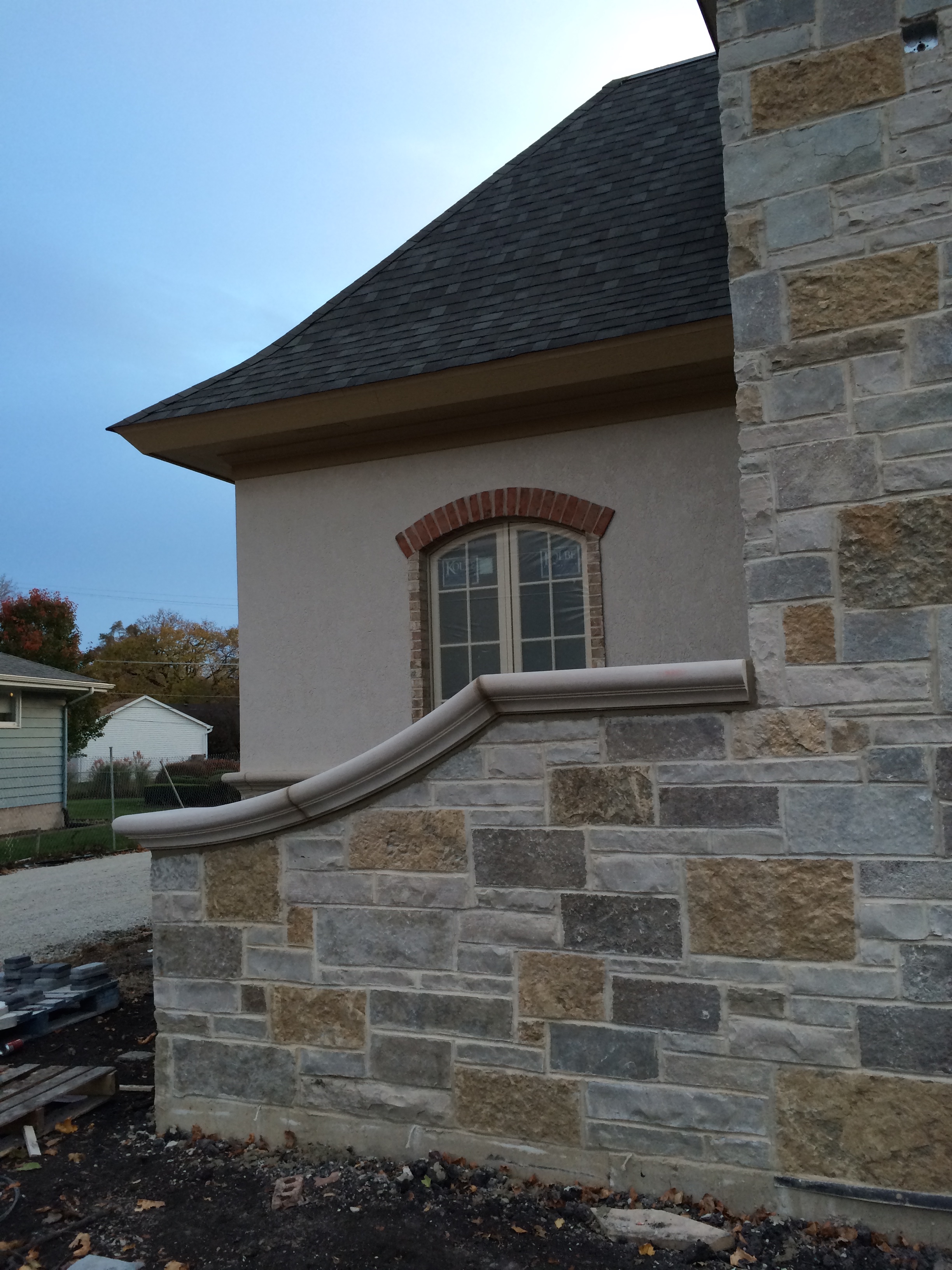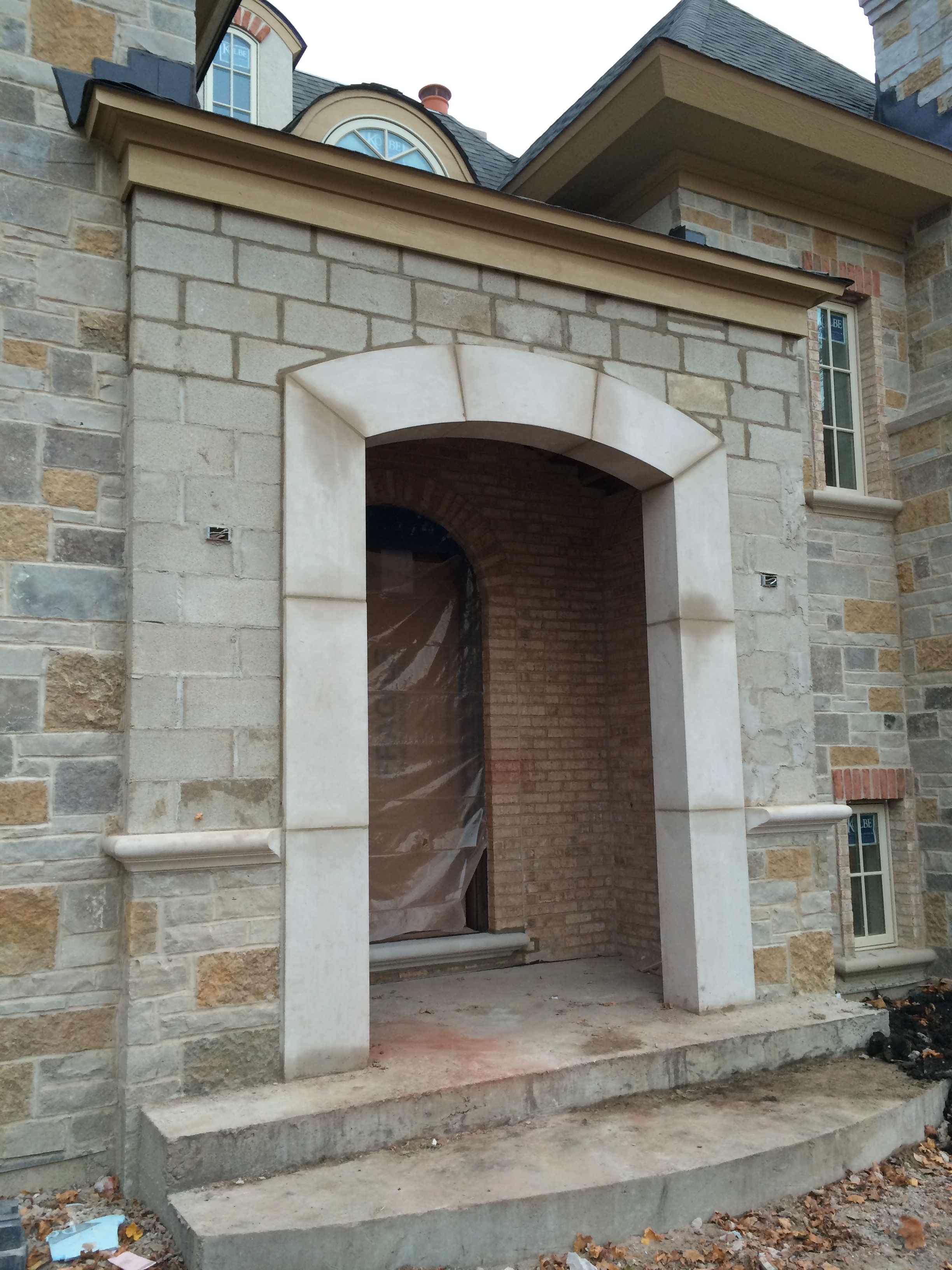 Finally….the stone masons finished placing the 800 pound limestone pieces and formed our arched entry. The cinder blocks were also added to complete the porch structure and now await their stucco coating from Erich and his crew. The masons also placed the caps on the knee-walls.