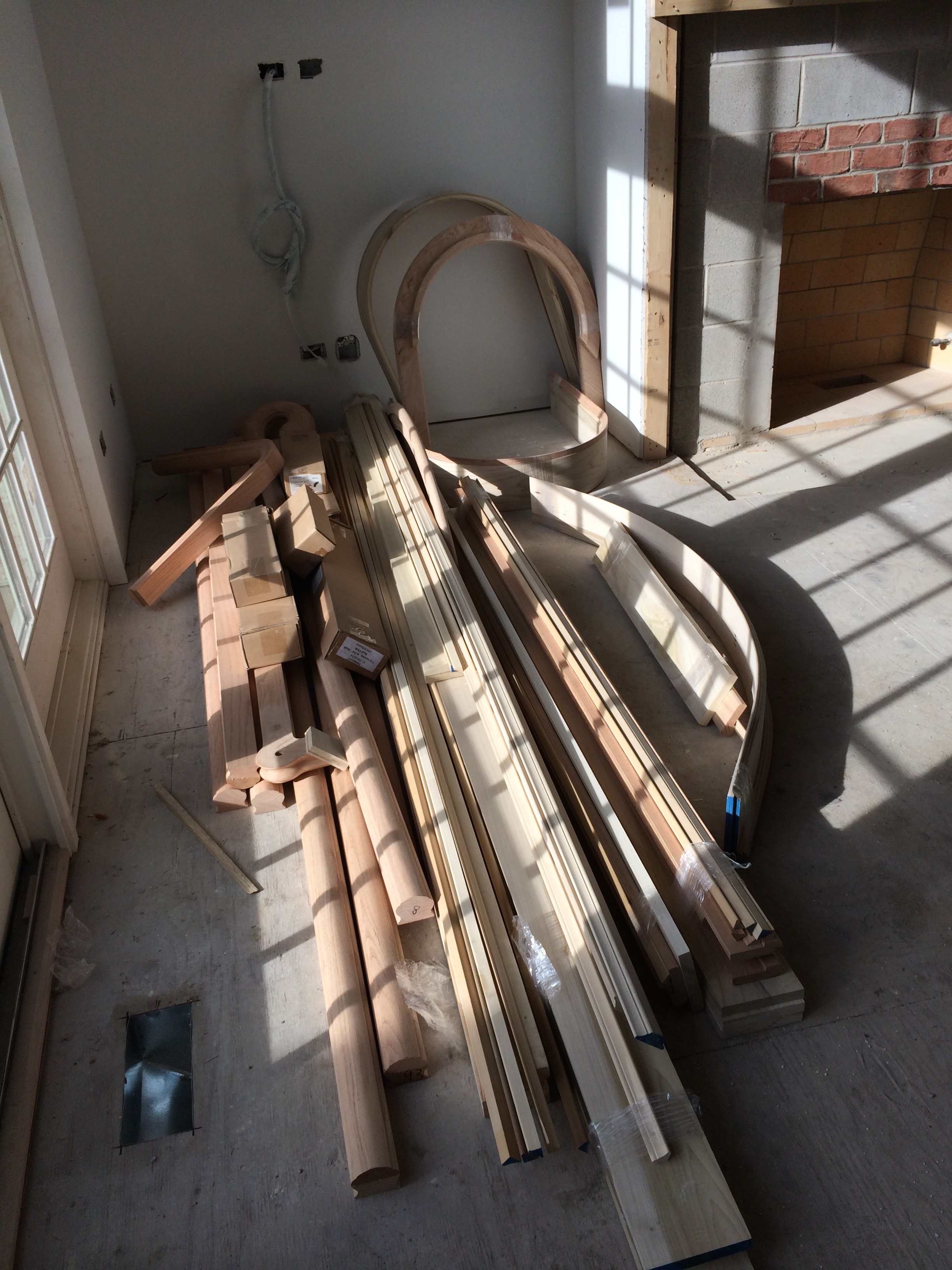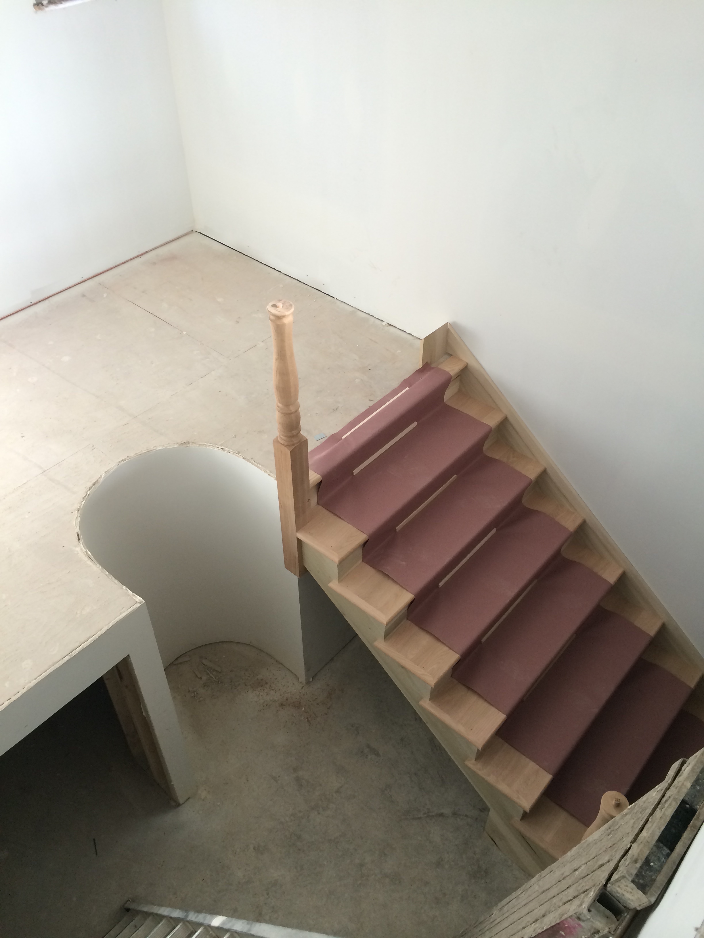 Perhaps the biggest development was that the first flight of stairs was installed…connecting the basement to the lower landing.
