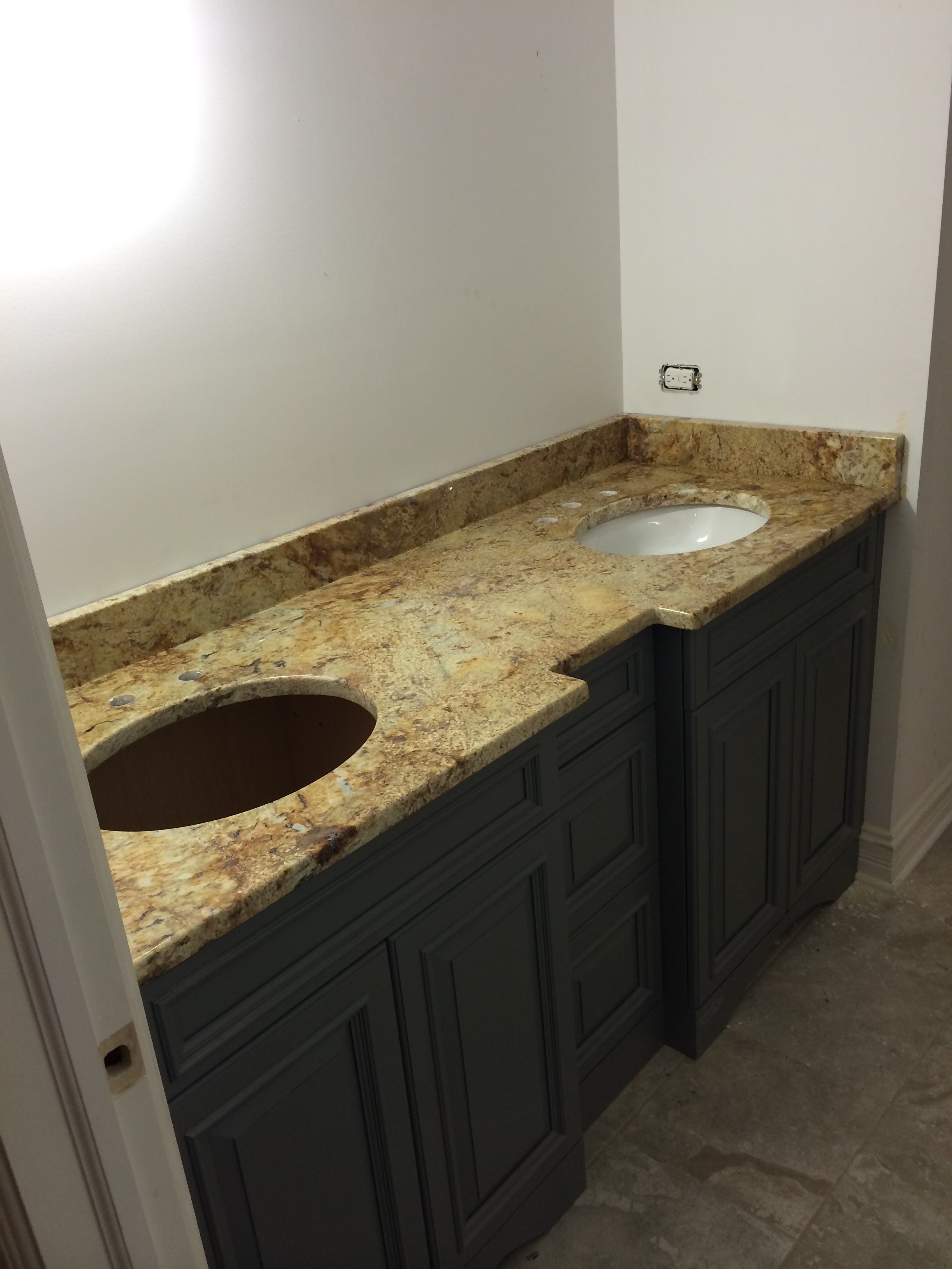 There were also two vanity tops installed – one in Maddie’s bathroom and the other in the basement bathroom. It’s gratifying that the colors we selected; actually coordinate with the floors and cabinets as planned!