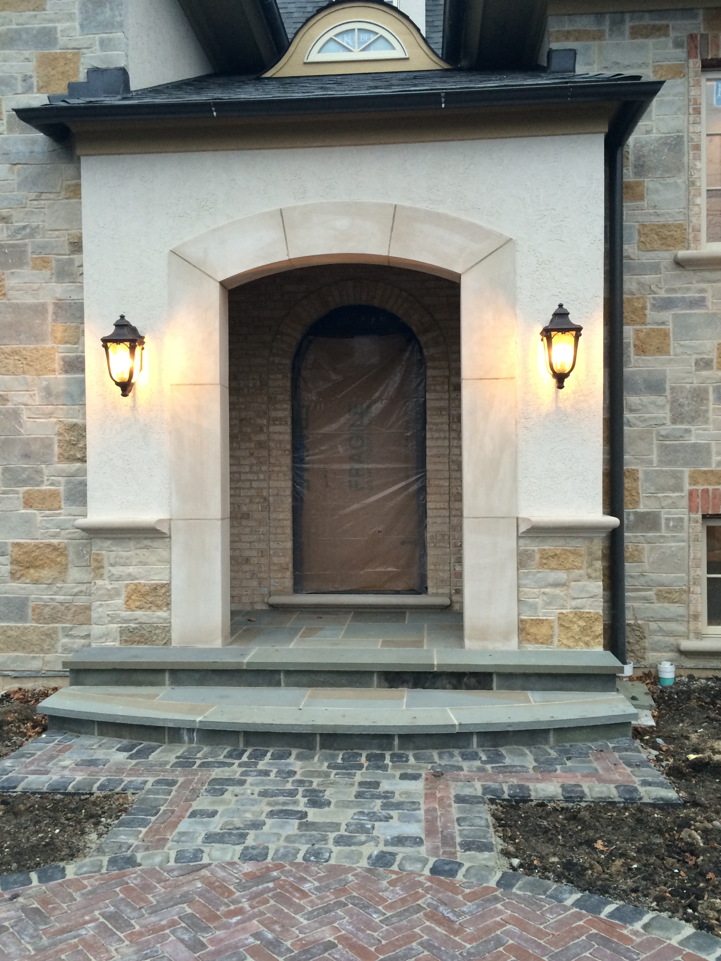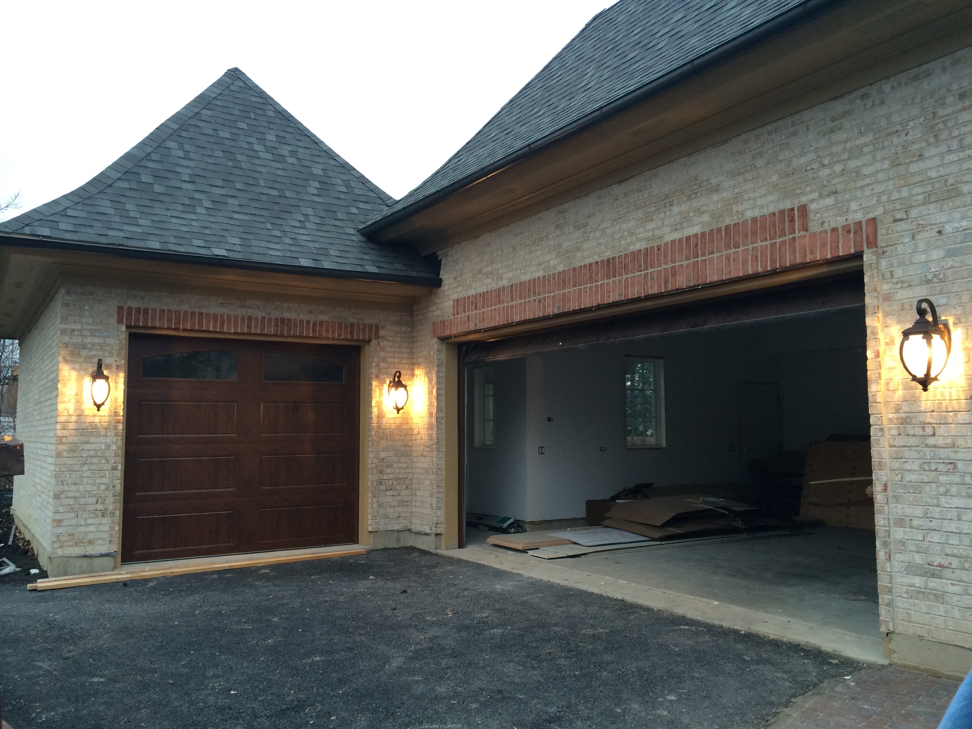 Looking strictly out for the welfare of the electricians…Anne advised Rick about six weeks ago to have Dan and Al install the exterior coach lights. Thirty degrees and fifty days later Rick acted on Anne’s sage advice and, voila – we have working coach lights. In addition to the electrical kind…we also had dug (AFTER the pathway was installed, of course) the trench to run the gas to the gaslight. That should be lit up within a week.