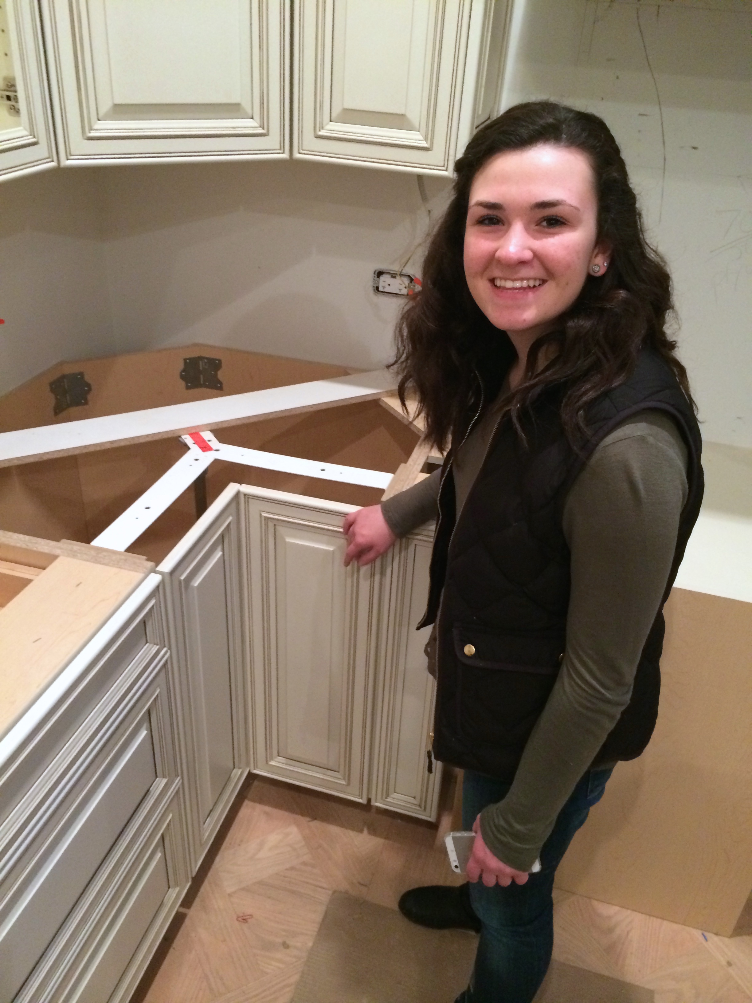 On the inside, Steve has been installing cabinets and nearly as fast as he can point his electric screwdriver into the next cabinet the counter tops arrive and are installed. We’re wrestling with how to access the top cabinets – being about 10 feet up from the floor.