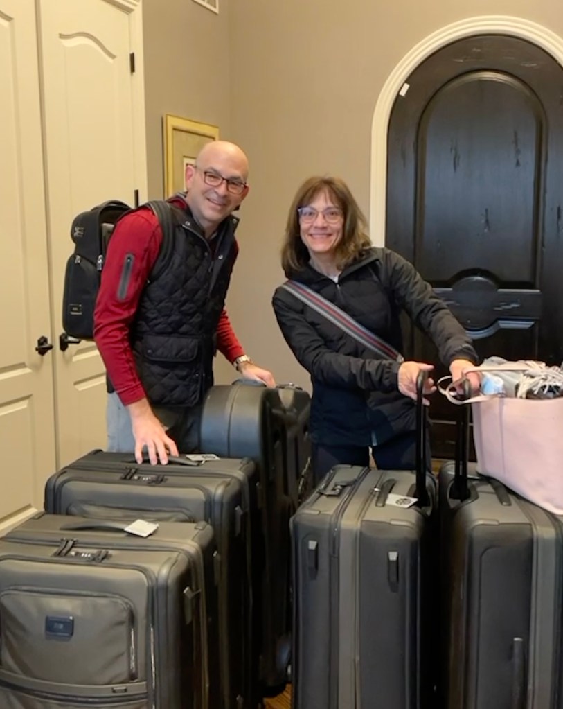 And so… we’re off. Leaving Hannah with big hugs and toting big bags.