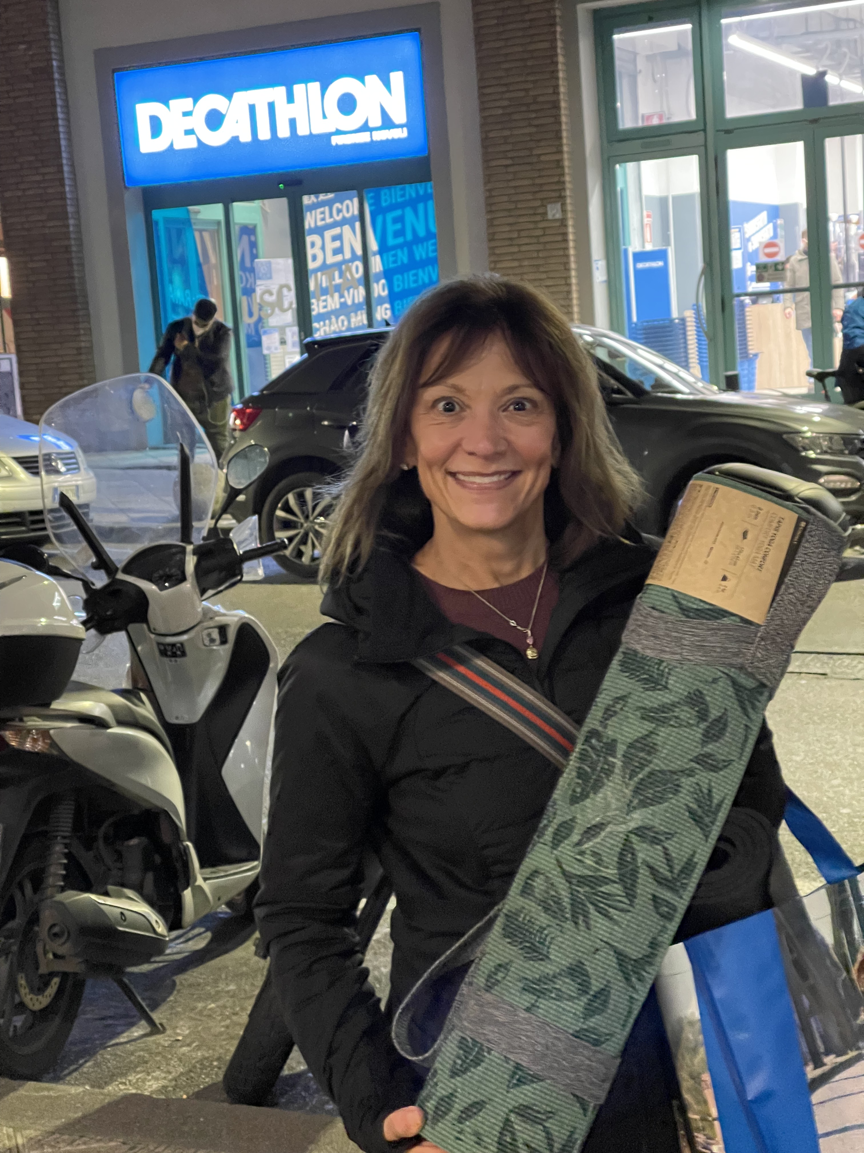 love Anne’s new Italian scarf-look like it’s coming in handy there brrrr. and of course the yoga mat!