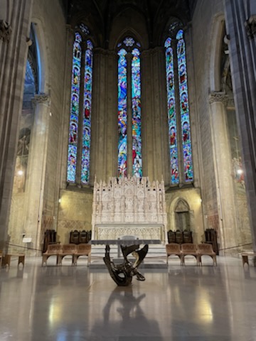 The four pics above reflect what grocery shopping and Sundays in Firenze look like. I’m in awe at the quality and selection of food at the local “delis” – it’s no wonder that the kitchen is so small. For $20 we buy veggies, po’tates, breads, legumes, cheese, meats and pastries to last 3-4 meals. And, that Grosso fish counter is in the basic COOP Supermarket and rivals the fishmongers’ stands in Venice. Octopus, fishies from both coasts and rivers betwixt … 25 kids of crustaceans, mollusks, oysters, clams, mussels. What the heck; have I died and gone to Bikini Bottom? ASIDE: The astute observers will notice on our plates likely what is the same salmon species that we buy from Clarence in the ‘Ville. Simply put, we’ve been eating everything else all week: squid, sea bream, octopus, baccala, shrimp, branzino and tuna and miss our go-to protein. That crowd pic is typical of Sunday in Firenze Centro… EVERYONE gets dressed up for church then heads downtown for lunch/shopping/socializing and dinner with friends and family. No other day of the week looks anything like this.