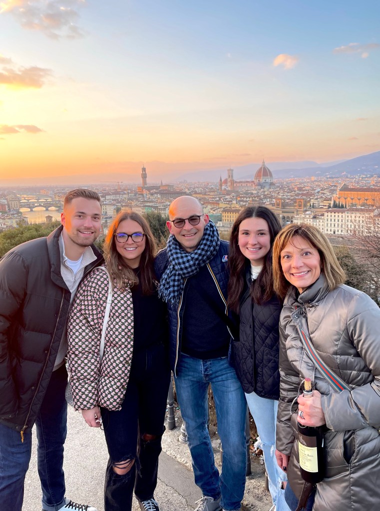 Case in point – look no further than the following photo. You’ll see the Uber-popular and oft-selfie’d panoramic city overlook; built upon the Ramparts of the city’s ancient brown brick barrier. I present to you the “Piazzale Michelangelo.” … once again beautifully embellished – now with this Blogger’s fave people. 😊😊