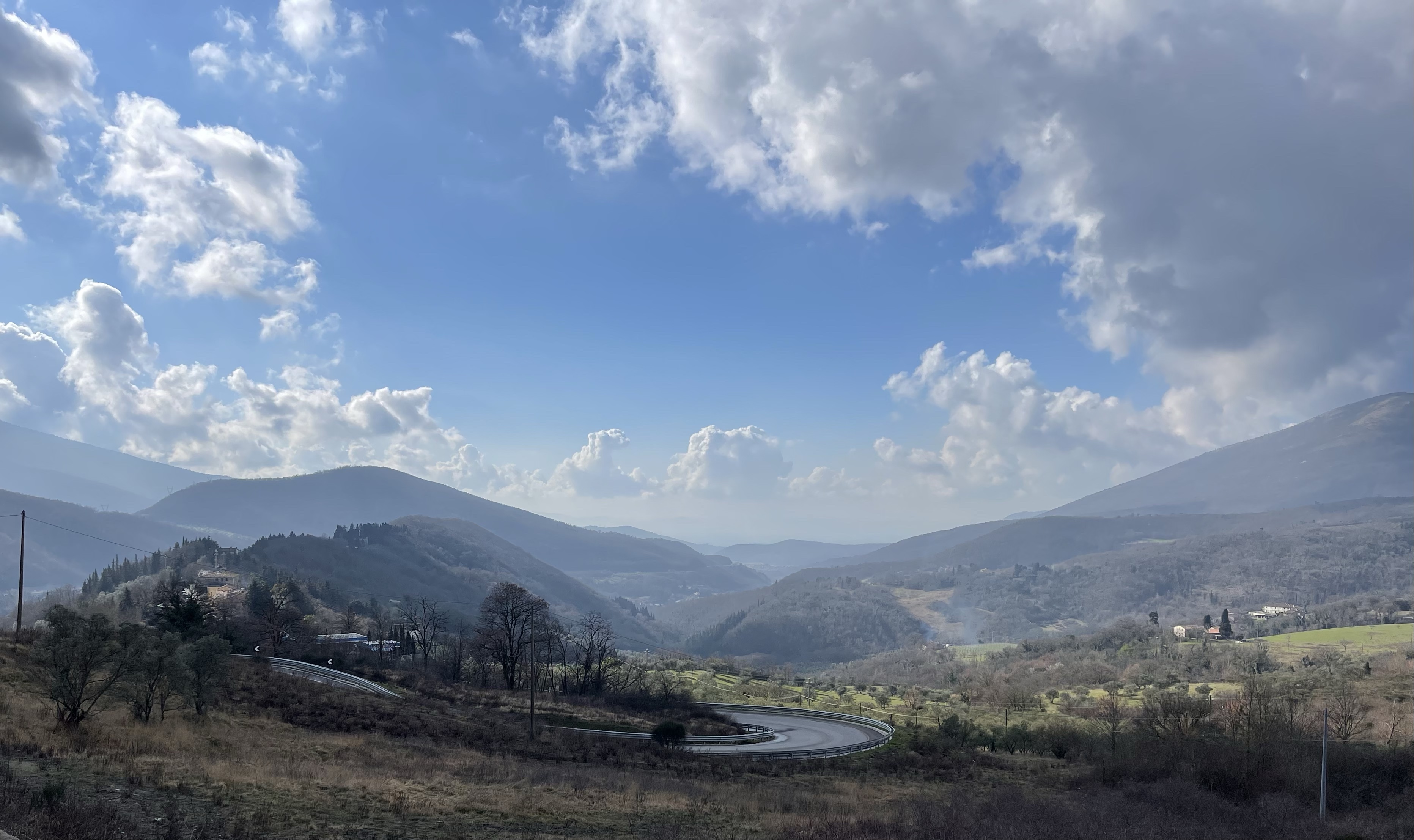 Along the Greve River near Fallone.This is in the ‘rugged’ north mountain range near Borgo San Lorenzo. It was a windy day, my friends. Cool sidebar… I rode through the town of Galliano. Yup, that’s the town where the famous aperitif in the tall skinny bottle was created and distilled.This descending switchback/hairpin is just BEAUTIFUL… and also VERY slippery when wet.Typical town WELCOME sign.