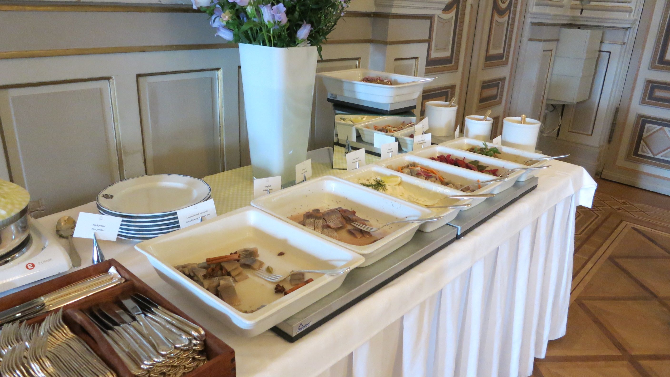 We then stuffed ourselves at the Grand Hotel’s Smorgasbord on Swedish delicacies: herring, salmon, reindeer, potatoes with dill, Swedish cheeses, rye crisps, roasted leg of lamb, salads, vegetables and desserts. Making many trips to the Smorgasbord and taking a little taste each time was easy until getting to the dessert table where Madeline misjudged her slice of cake and subsequently received offers from two bellmen to jointly help her carry her “slab” to her seat.